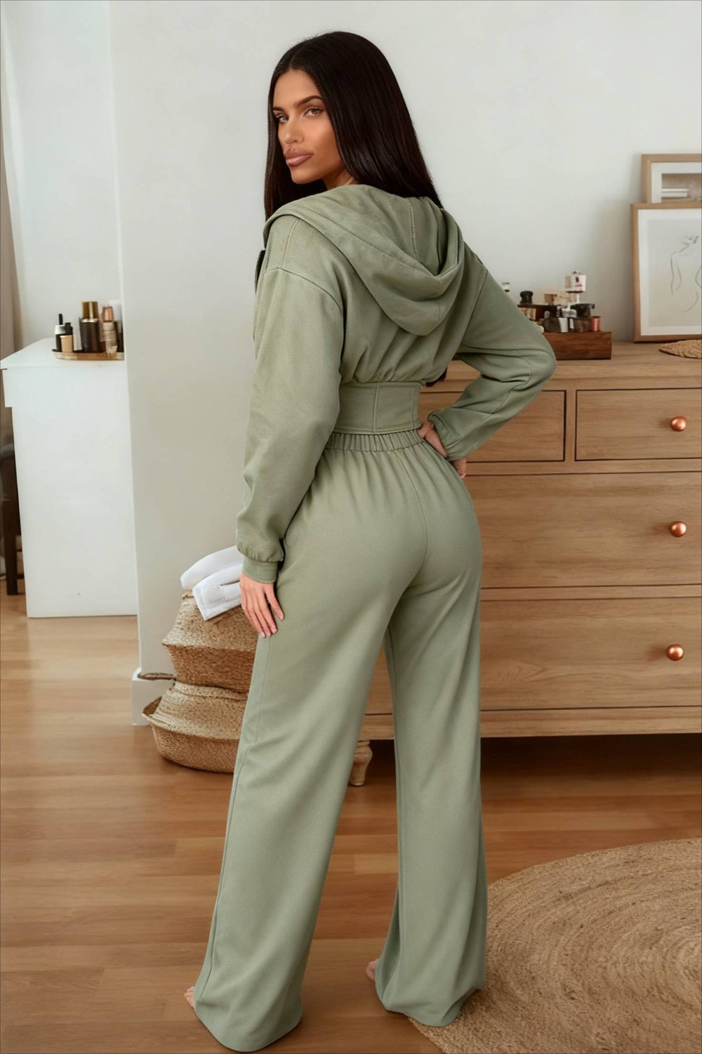 • Details: Zipper, Drawstring Waist
