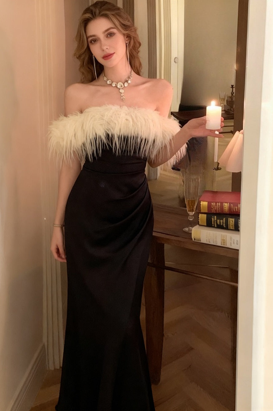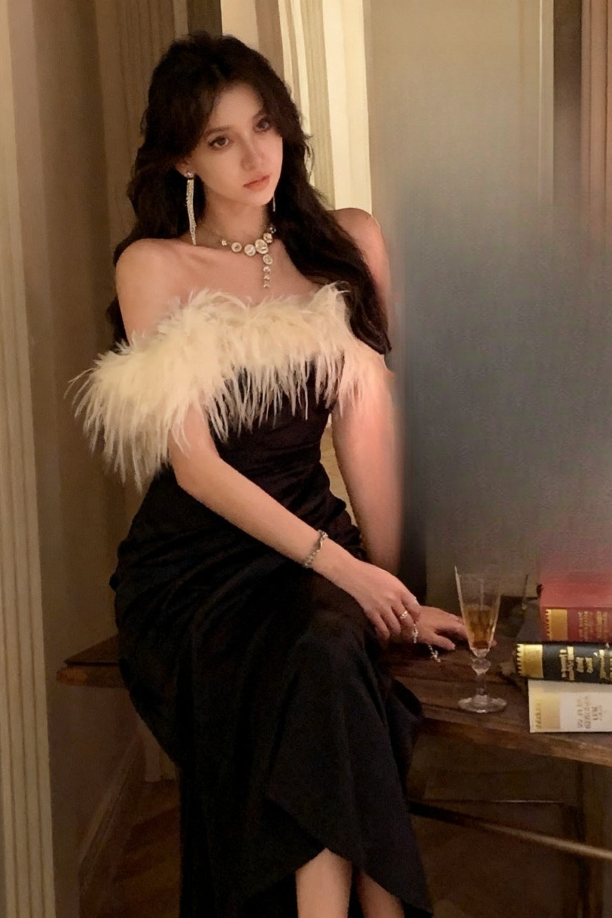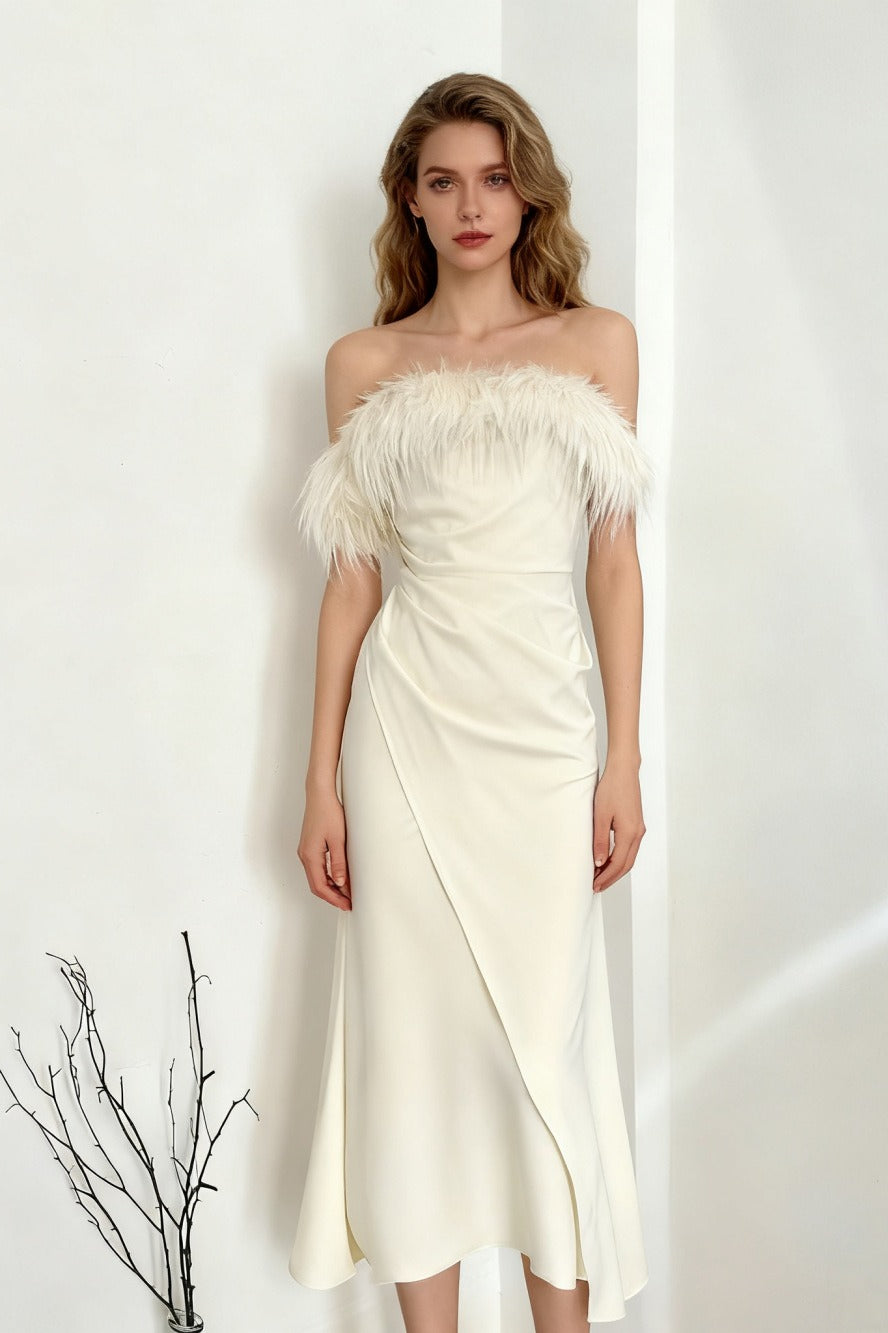 • Details: Ties, Fitted Waist, Feathers, Pleated