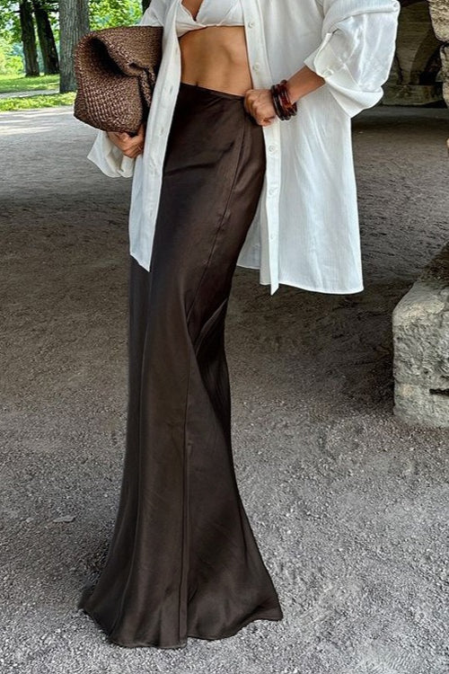 Draped Satin Slit Mermaid Skirt