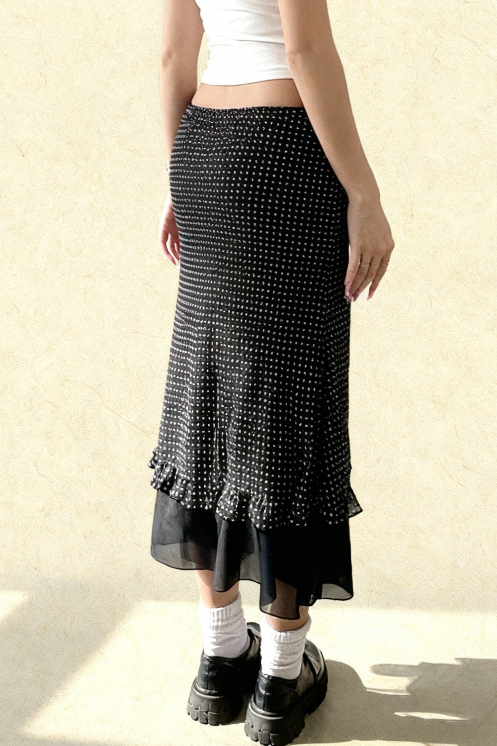 Polka Dot A-Line Mesh Midi Skirt