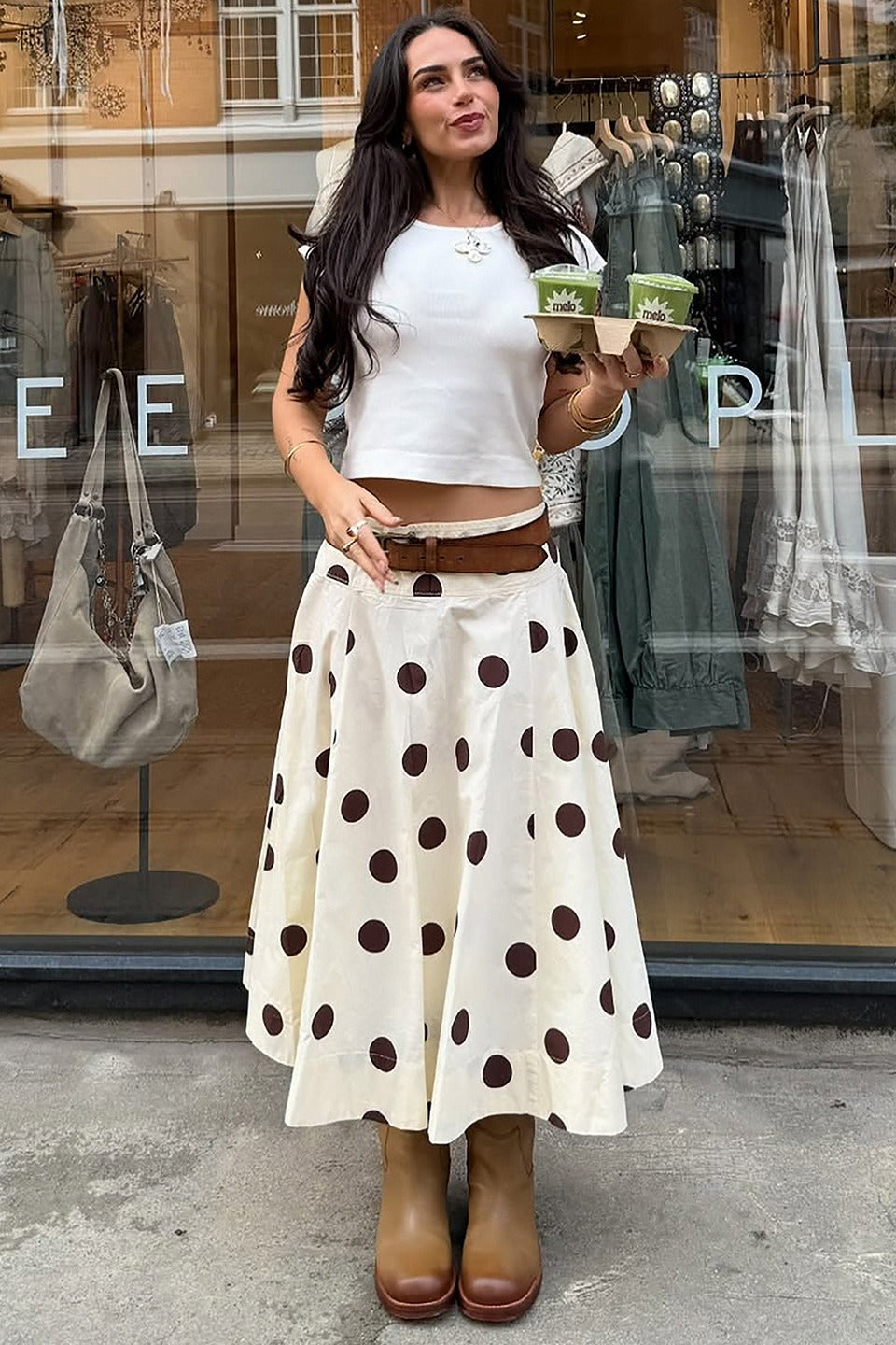 French Polka Dot Draped A-Line Skirt