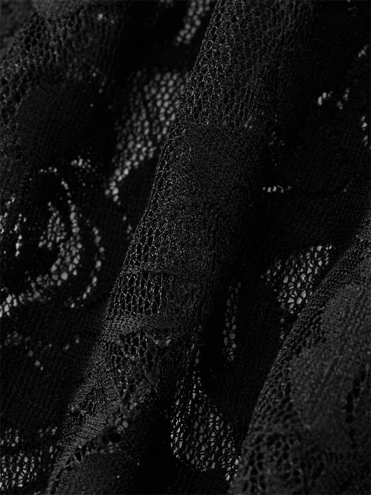 Increase quantity for Long Sleeve V-neck See-through Lace Slim Mesh Sheer Cropped Summer Clubwear T-shirts