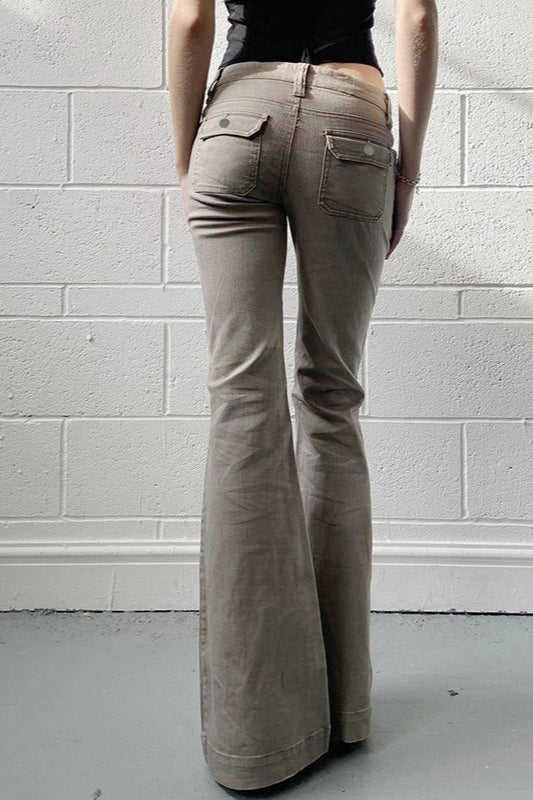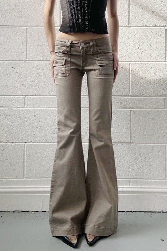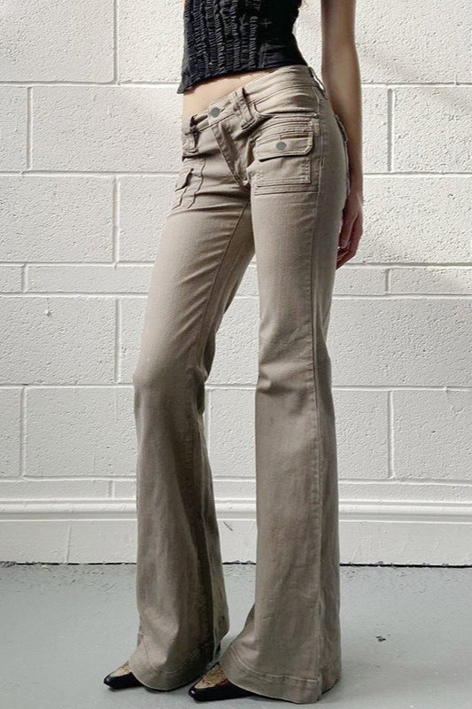 Low Rise Slim Flared Cargo Pocket Casual Pants