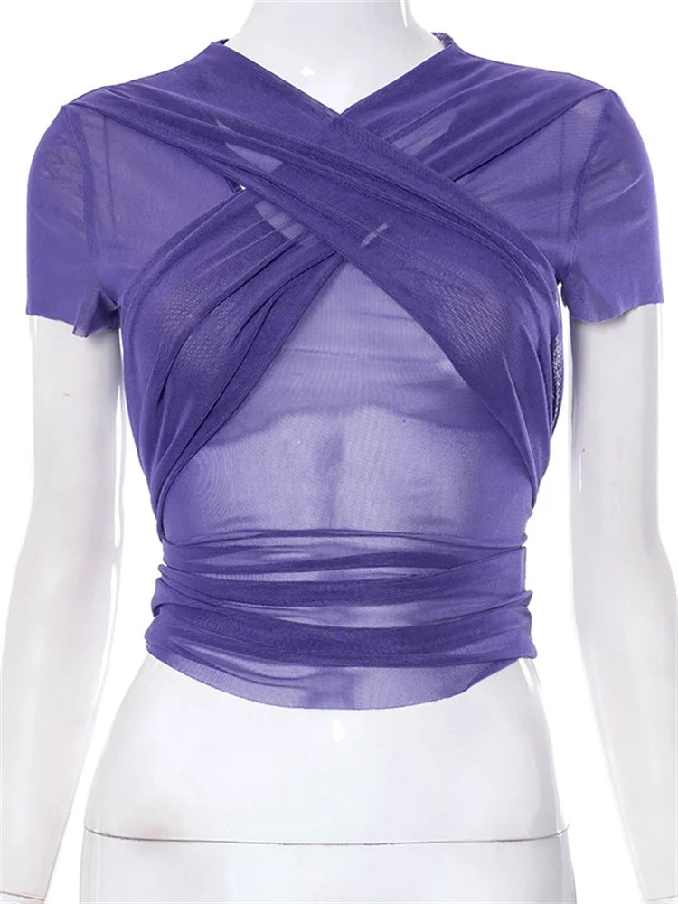 Mesh Sheer See Through Summer Y2K Criss-cross Lace-up T-shirts
