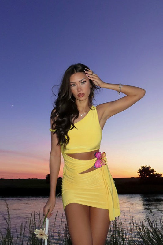 Decrease quantity for One-Shoulder Cut-Out Bow Birthday Dress