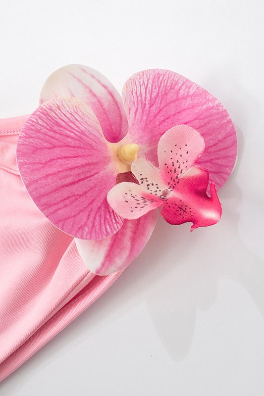 Decrease quantity for One-Shoulder Pleated Floral Birthday Dress