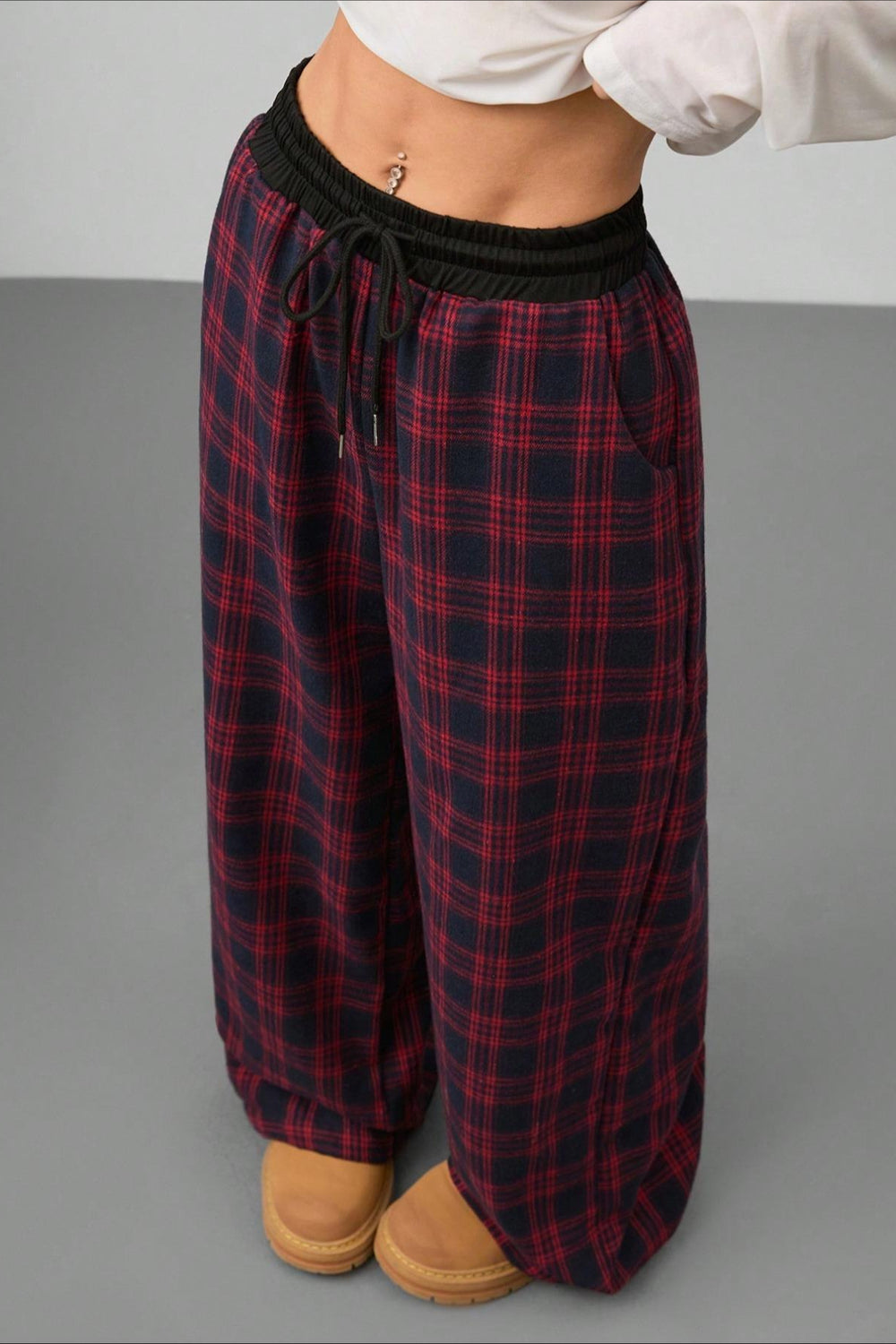 Plaid Elastic Waist Stretch Loose Casual Pants