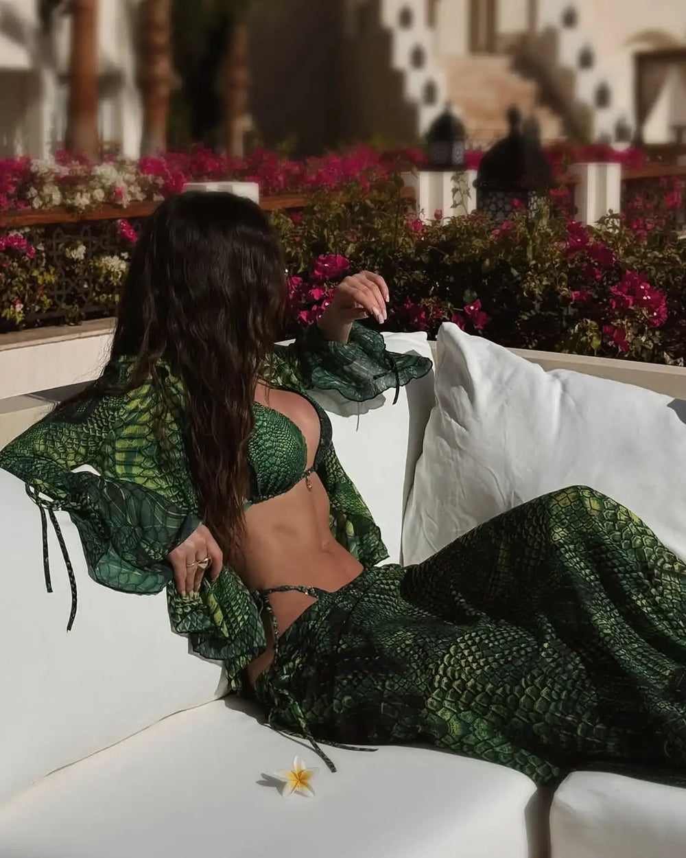 Increase quantity for Print Beach Skirt Cover Up Four Piece Swim Sets