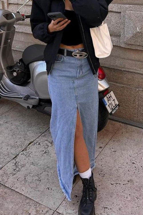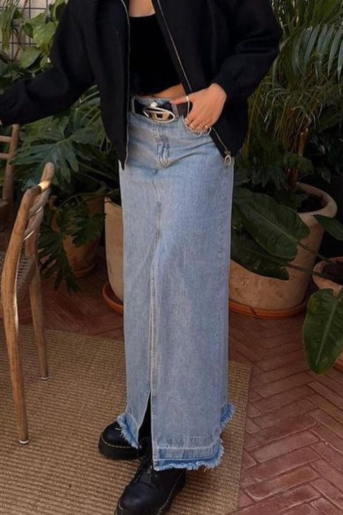 Retro Button Front Denim Bodycon Skirt