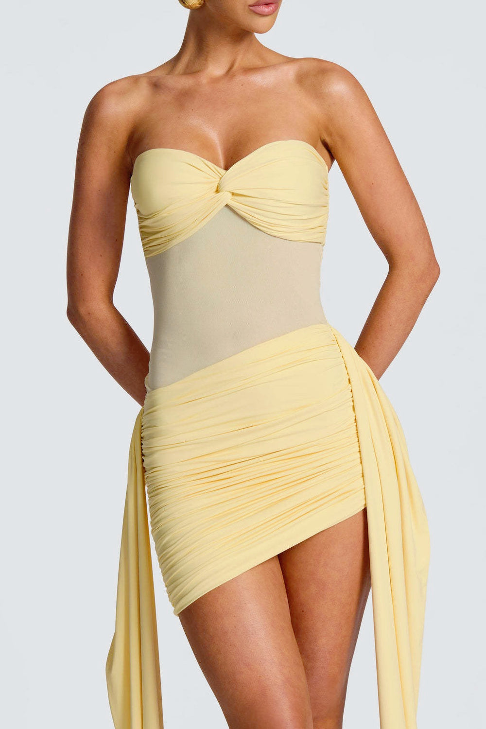 Ruched Sheer Slit Birthday Dress