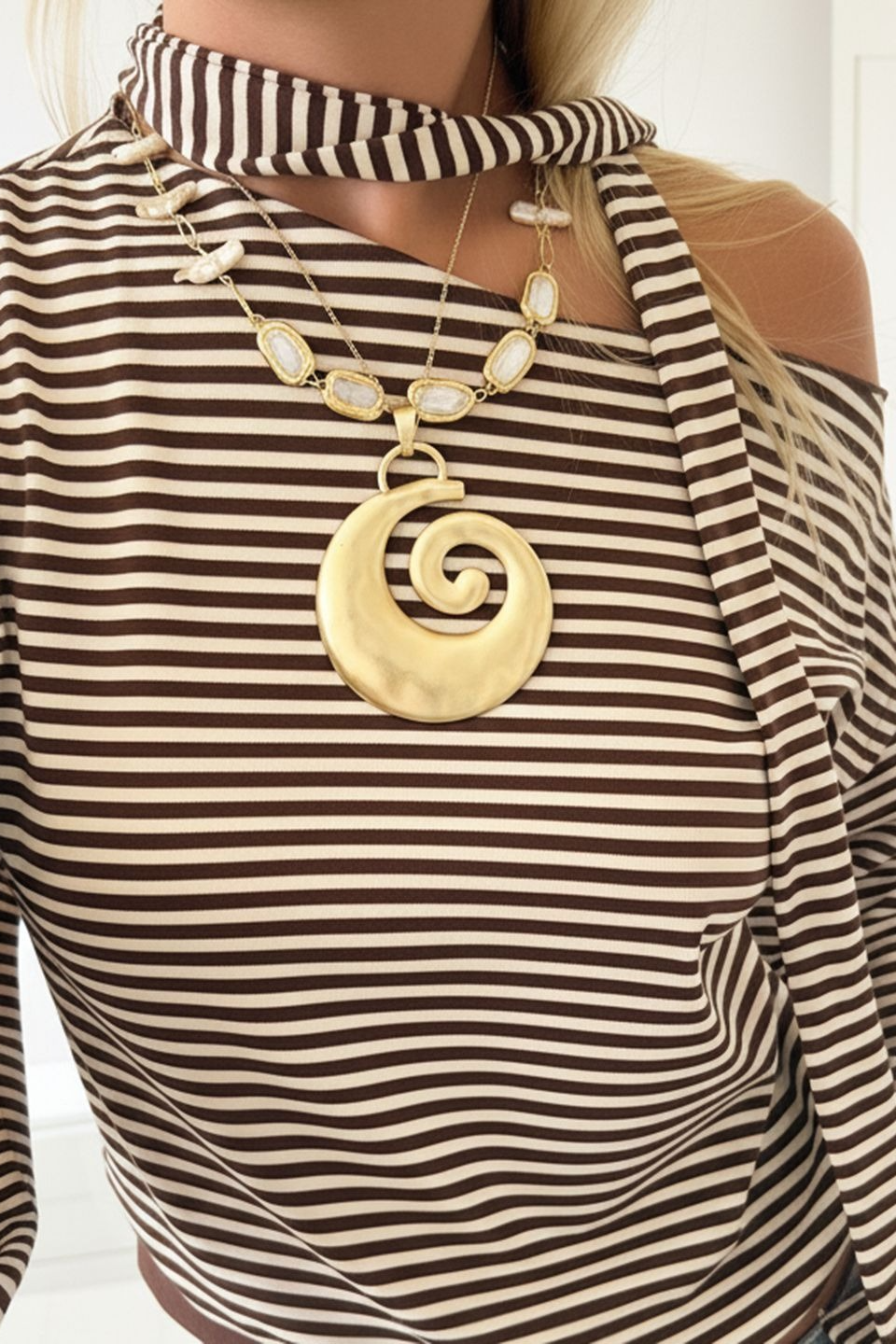 • Details: Stripes, Brushed Fabric, Off-Shoulder