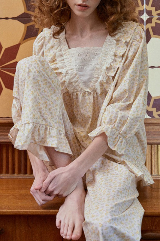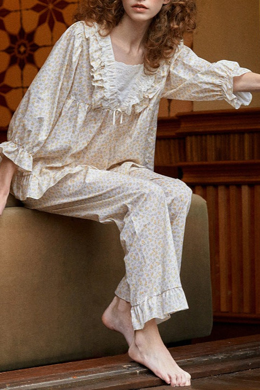 Sweet Square Neck Cotton Sleepwear Pajama Set
