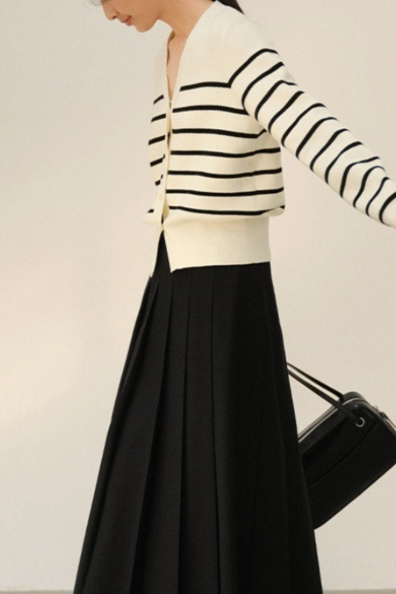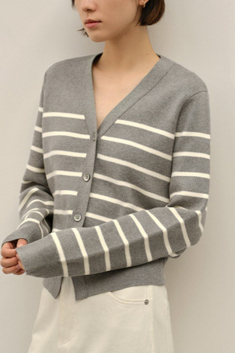 V Neck Stripe Knit Cardigan