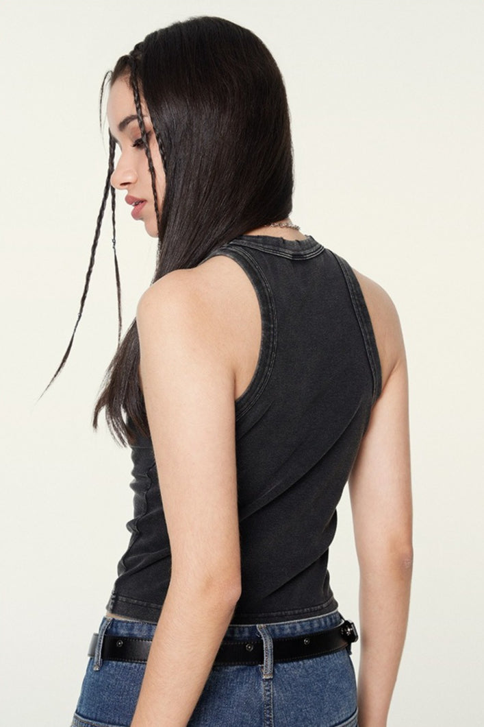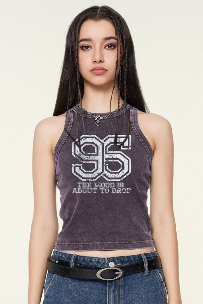Washed Digital Print Crop Tank Top
